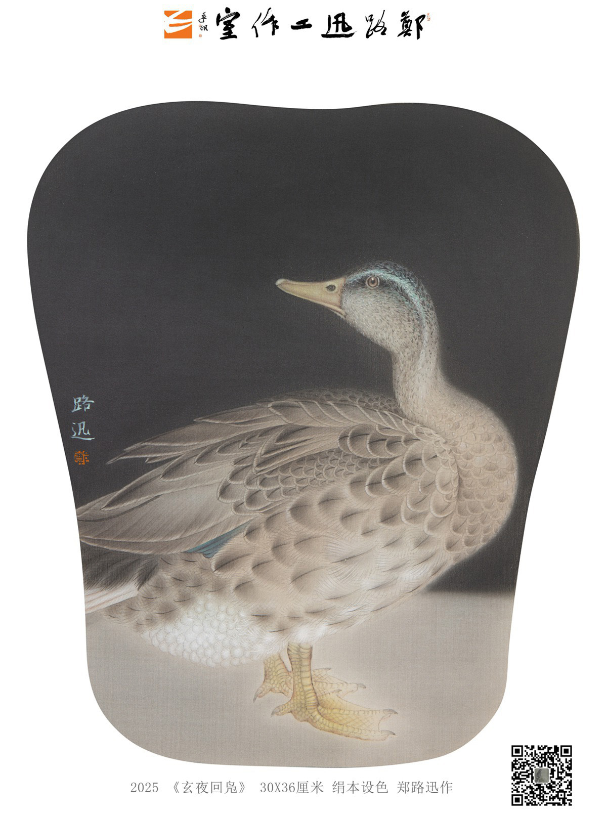 2025 《玄夜回凫》 30X36厘米 绢本设色 郑路迅作